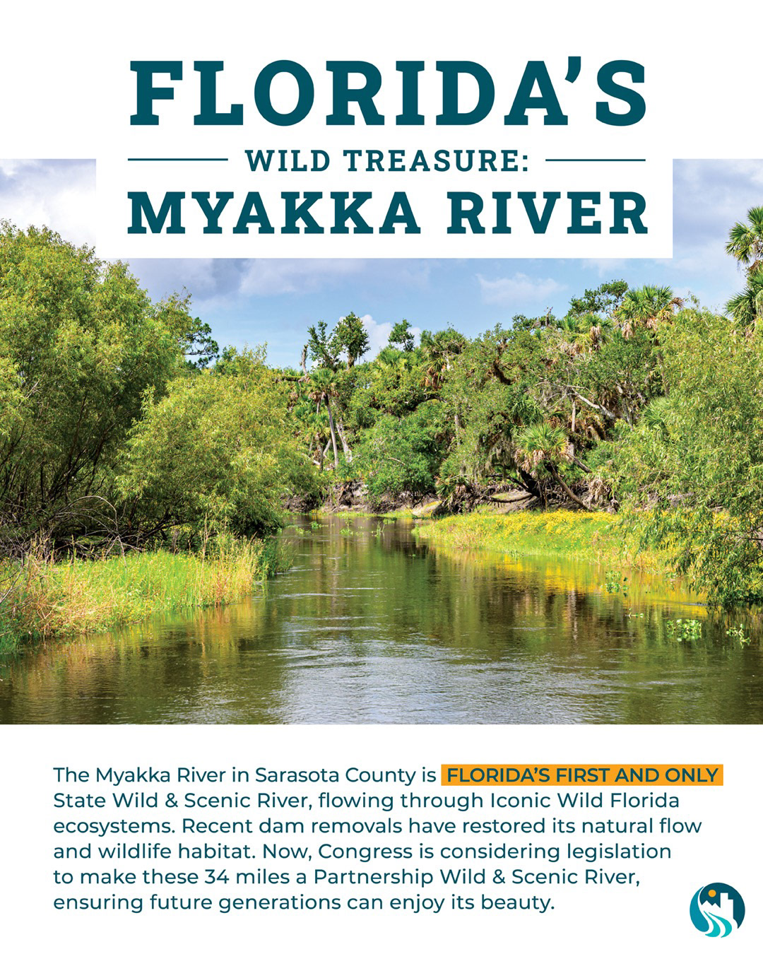 In a January 2026 media blast to accompany the release of their National Protected Rivers Assessment Tool, American Rivers highlighted the Myakka River in Sarasota County as one of three examples of River Protection Across the U.S. Each story highlights how a diversity of river protection mechanisms benefit communities, wildlife, and provide climate resilience. The Myakka River story illustrates how preserving the free-flowing character of rivers through river specific conservation mechanisms, such as dam removals and habitat restoration, is a cornerstone of river protection.